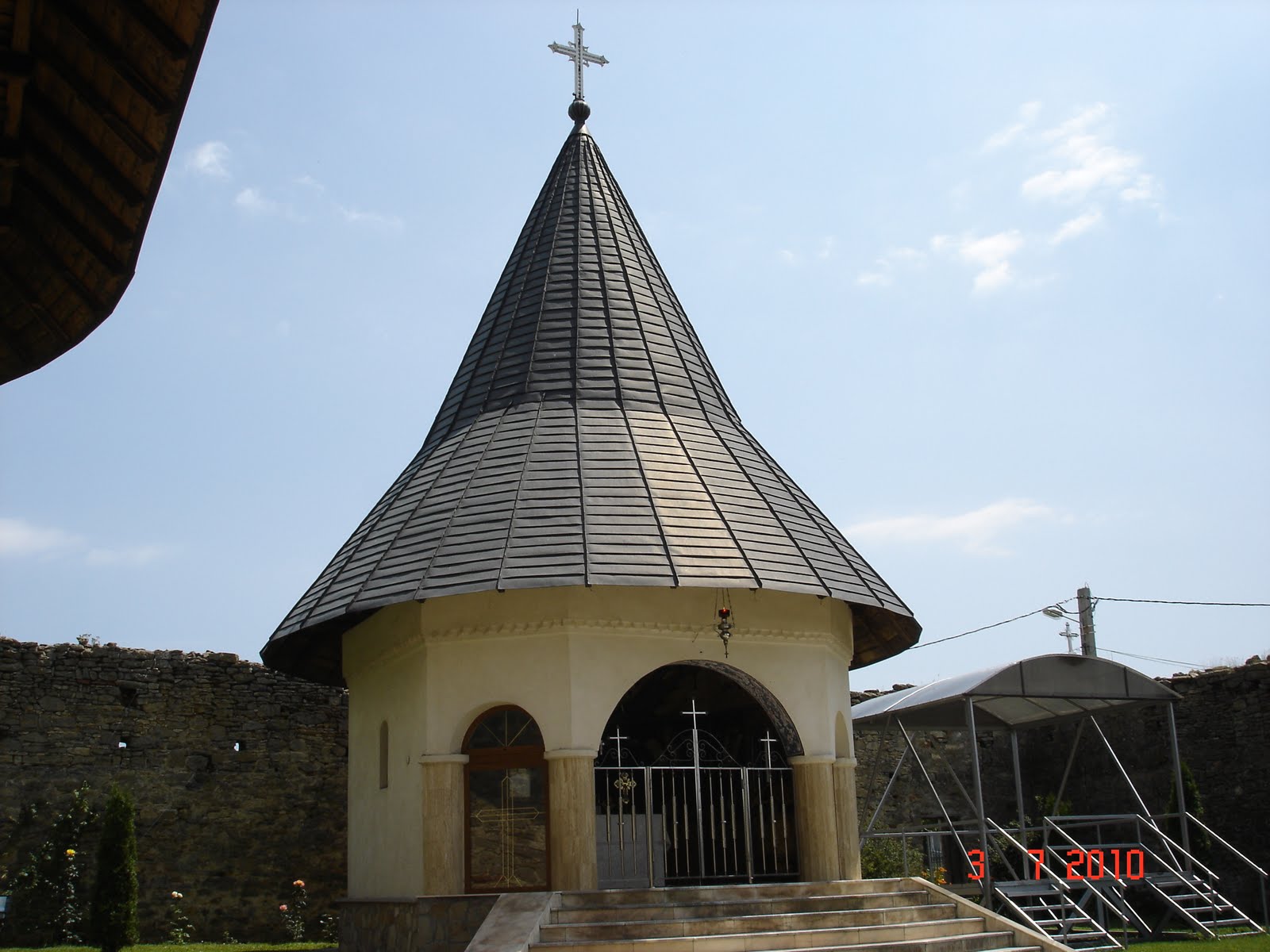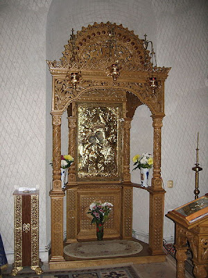 Printre obiectele de cult renumite ale mănăstirii se distinge în mod deosebit prin densitatea sa picturală și prin atmosfera gravă pe care o degaja Icoana Maicii Domnului cu Pruncul considerată ca fiind făcătoare de minuni. Această icoană a fost pictată în anul 1938 de către preotul romașcan Octavian Zmău și donată schitului de ieromonahul Iov Mazilu, egumenul acestui schit.